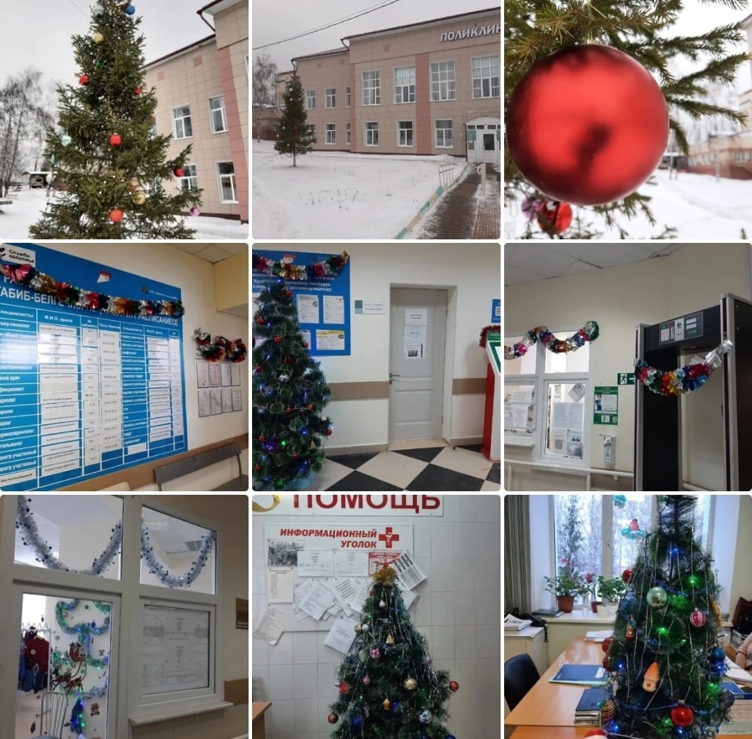 Возле регистратуры сотрудники нарядили елочку и украсили все вокруг. Такая же красота в приёмном отделении и в отделе кадров.