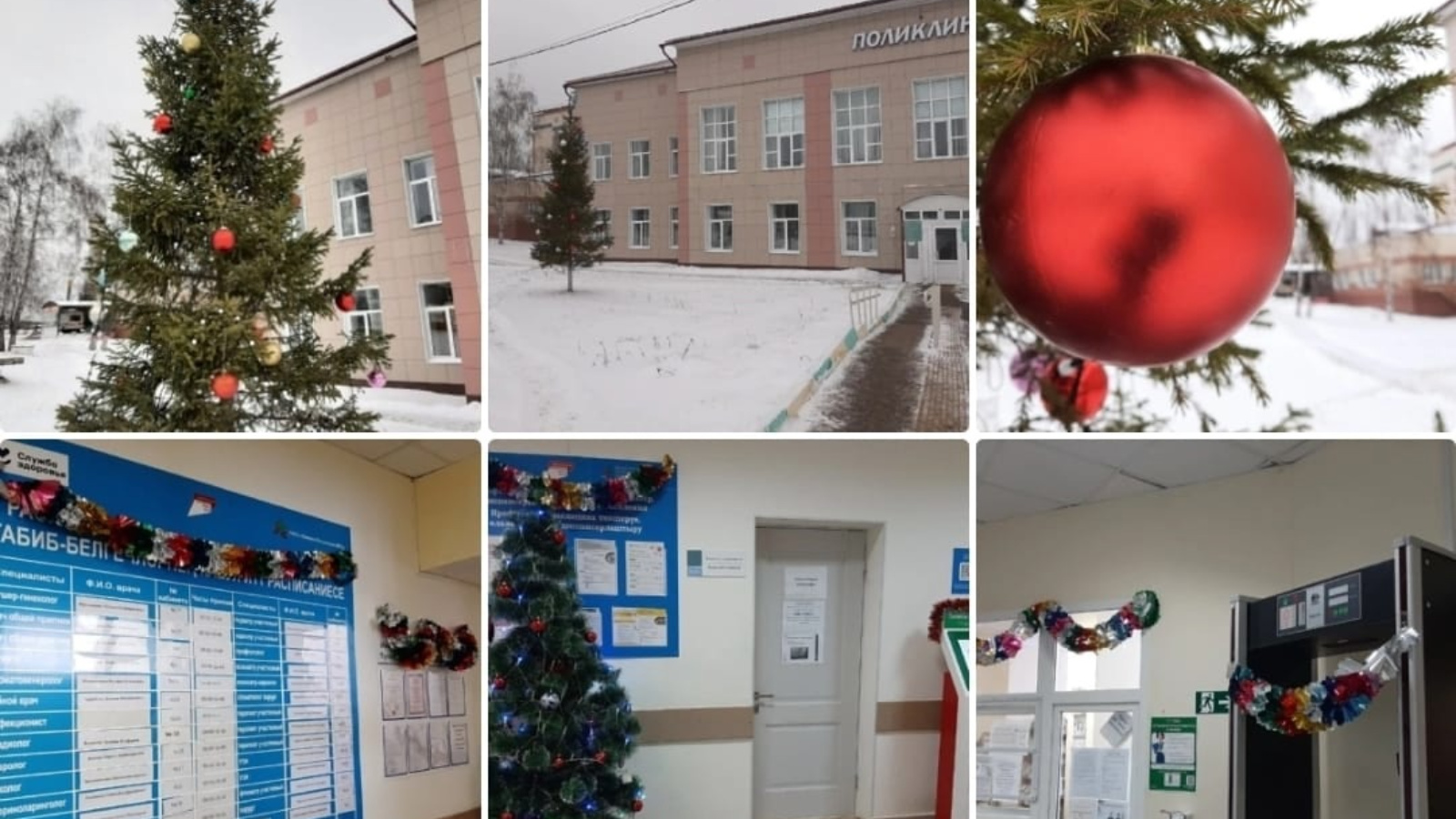 У здания поликлиники Камско-Устьинской ЦРБ пациентов и сотрудников больницы встречает украшенная красавица-ель.