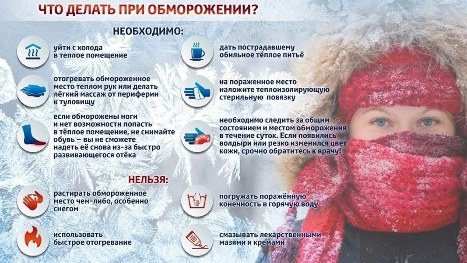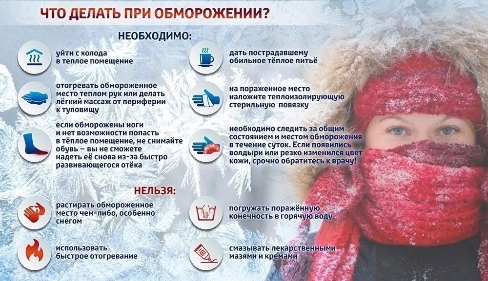 Напоминаем правила первой медицинской помощи при обморожении в карточке.