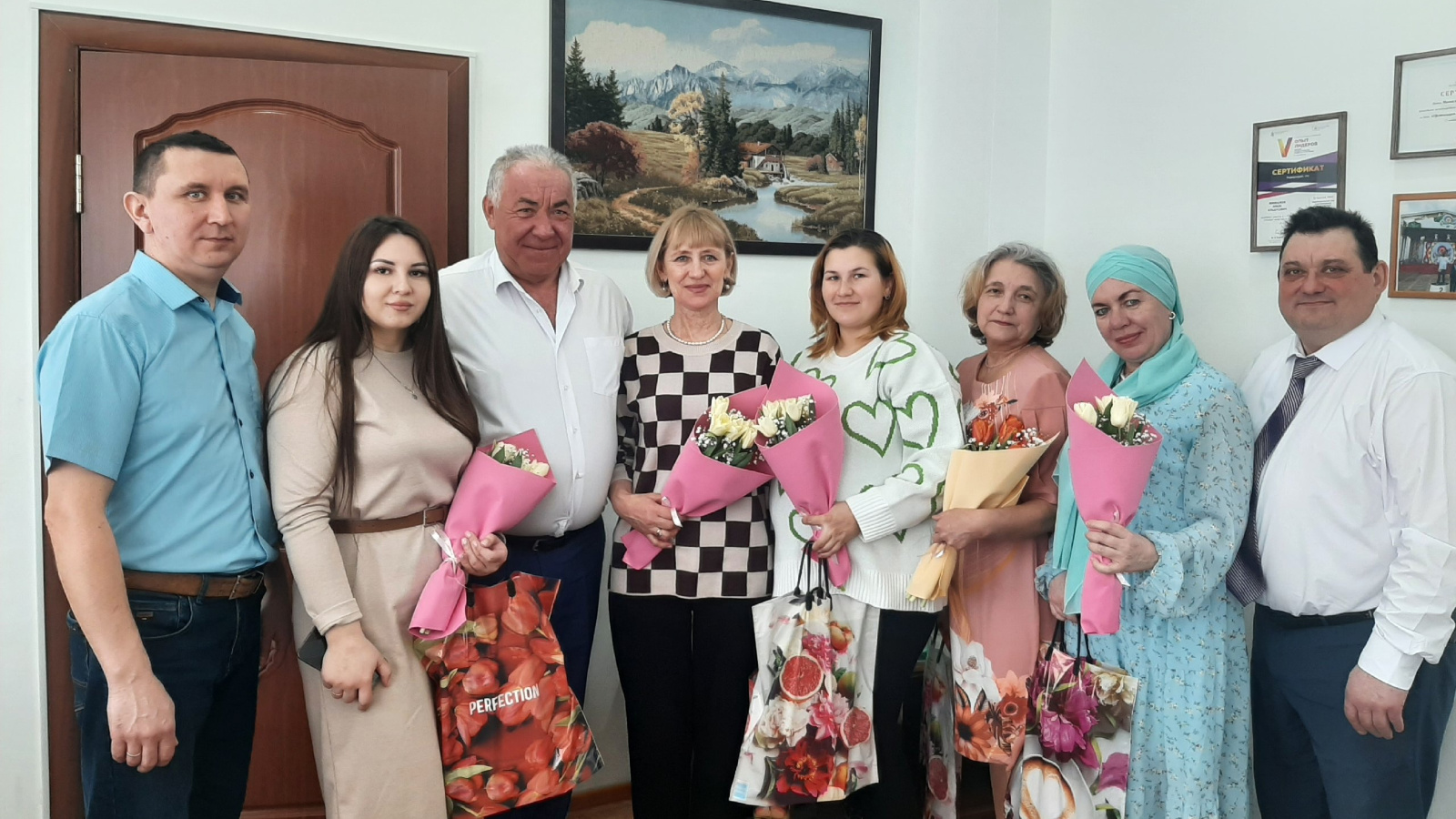 Һәр хатын-кыз үзәк район хастаханәсеннән һәм профсоюздан чәчәкләр һәм бүләкләр алды.