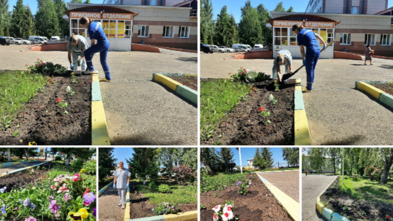 Һәр клумбаны больница хезмәткәрләре кайгыртып карый.