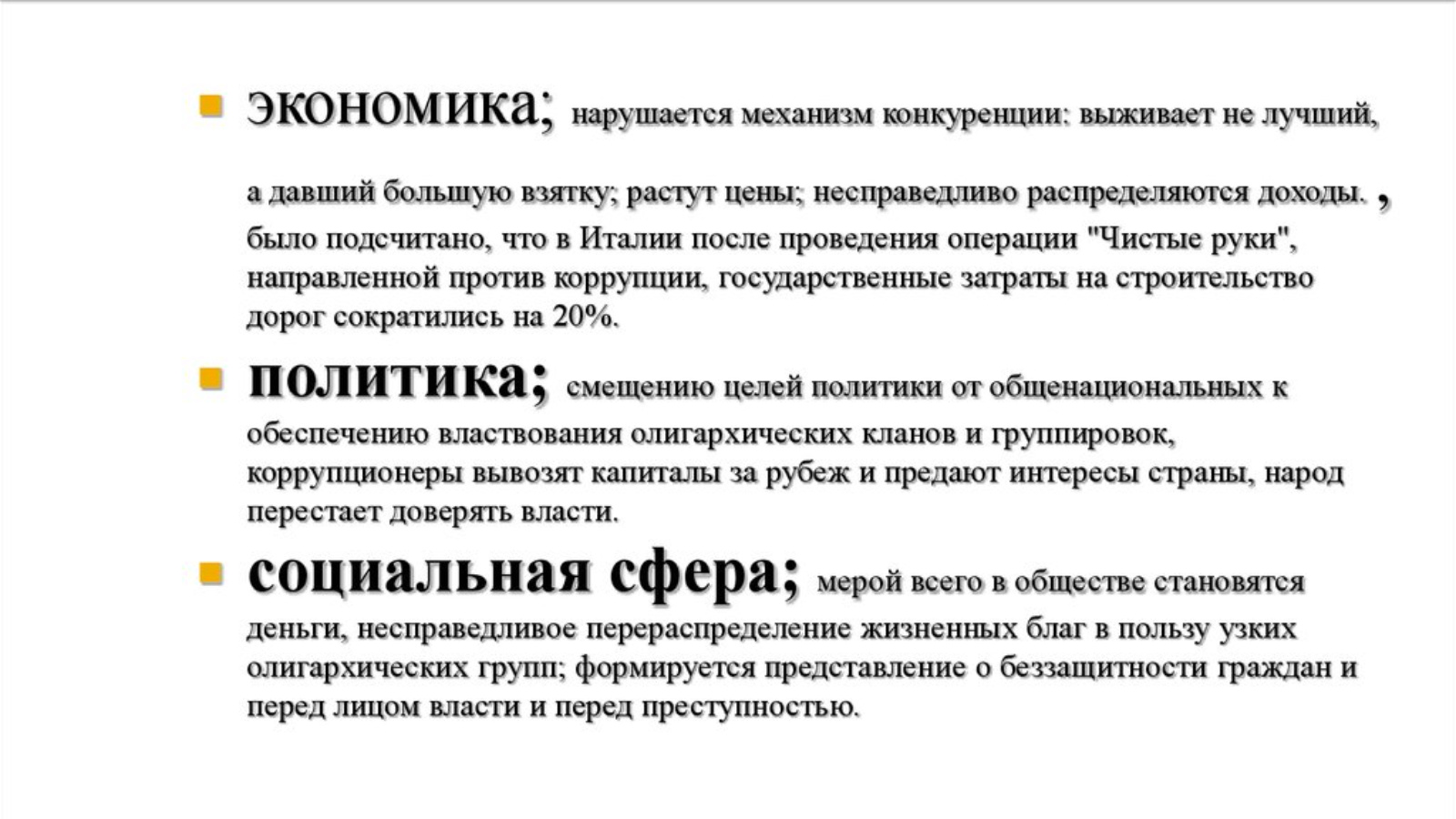 Шулай ук җәмгыятьнең икътисади тотрыксызлыгы да роль уйный: кризис чорында, керемнәр дәрәҗәсе төшкәндә, коррупция акча эшләүнең үзенчәлекле альтернатив ысулына әверелә.